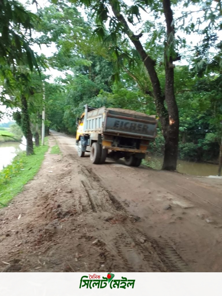সিলেটের মাননীয় ডিসি মহোদয়ের নির্দেশনা অমান্য করে! রাতের আধারে শতশত ট্রাকে করে বালু বোঝাই করে নিয়ে আসার কারণে মাতুরতল টু গোয়াইনঘাট রাস্তার বেহাল দশা!