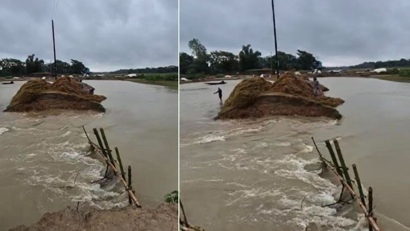 সুনামগঞ্জে গ্রামীণ সড়ক ভেঙে হাওরে ঢুকছে পাহাড়ি ঢল